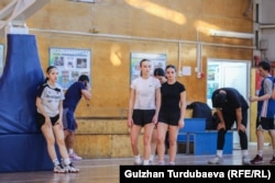 Баскетболчу кыздар машыгуу учурунда. СүрөтGulzhan Turdubaeva (RFE/RL)