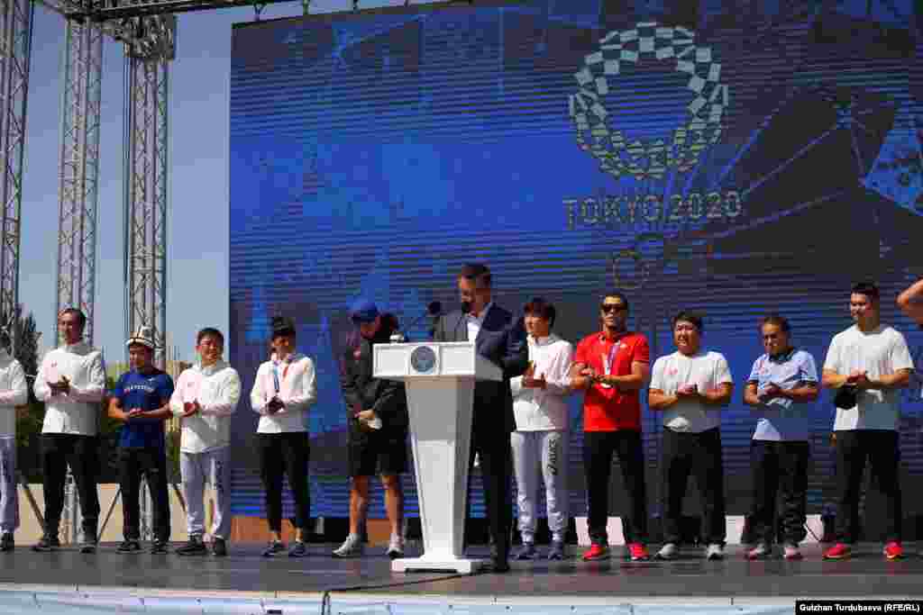Кыргызстандык курама командага арналган салтанаттуу иш-чара андан соң Ала-Тоо аянтында уланды.