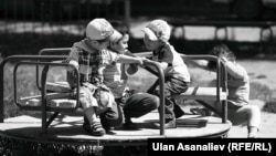 Биз Кенже апа айтып жаткан Балдарды коргоо борборуна да баш бактык. Аталган борбор ошол эле Келечек конушунун онунчу көчөсүнөн орун алган. Биз барганда 8-9-класстын окуучулары жаңы келген ички мигранттардын балдарына сабак өтүп жатышканына күбө болдук. Алардын арасында Кенже апанын тун небереси Ибрагим да бар. Ал чоң апасы айтмакчы, калың карда туфличен жүрсө да, мектептен үйрөнгөнүн билимден суусаган балдарга айтып берет.