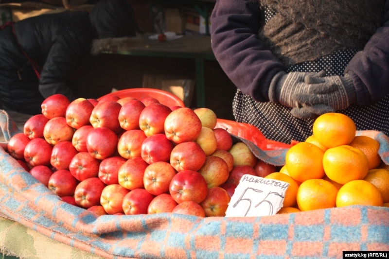 Ош базарында жашоонун агымы күндөгүдөй эле өз нугунда өтүп жатат. Коопсуздук маселеси боюнча алдыңкы катарда алма сатып отурган келинге микрофон сундум.