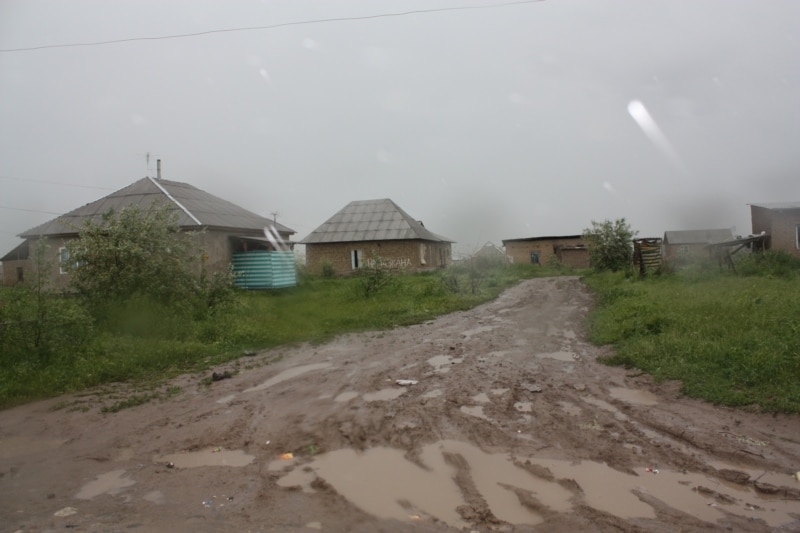 Чындыгында бул жолдордун тозогу жаан жааган учурда билинет экен. Анткени беш мүнөт жааган жаандан жер баткакка айланып, биз барган унаа тыгылып калды.