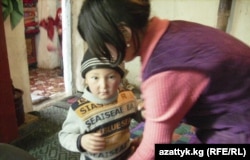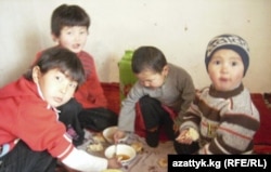 Үйдүн эң кичүүсү Айзирек дасторкондогу кыямдан оозуна илип алып, ыраактагы апасын сагынганын айтты.